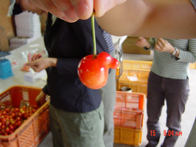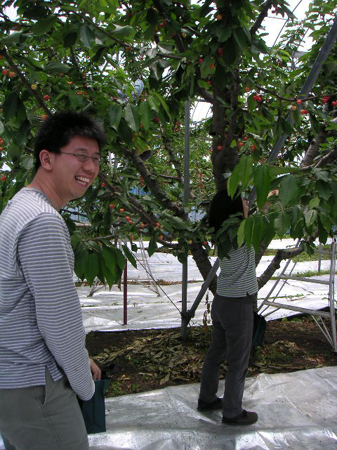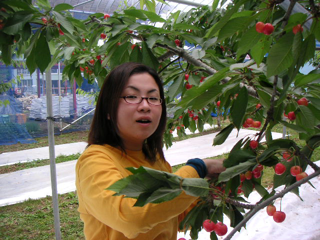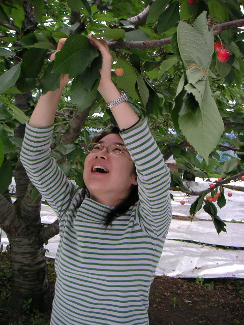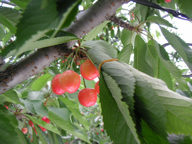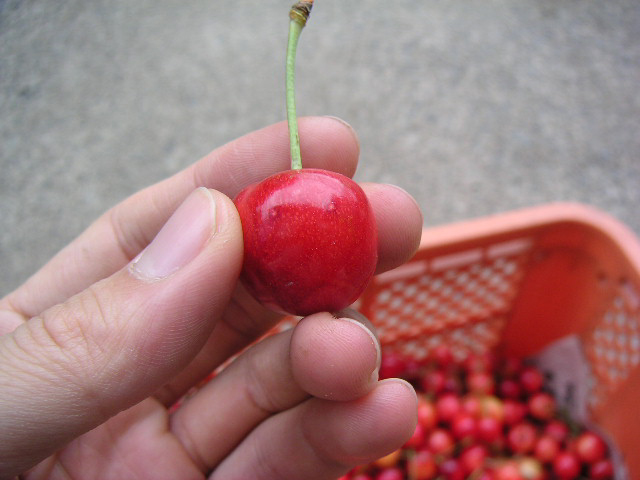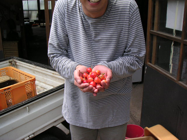 ![]() | この作業は楽しいんです。畑で見る丸くて赤いさくらんぼというのはとても綺麗でした。 |