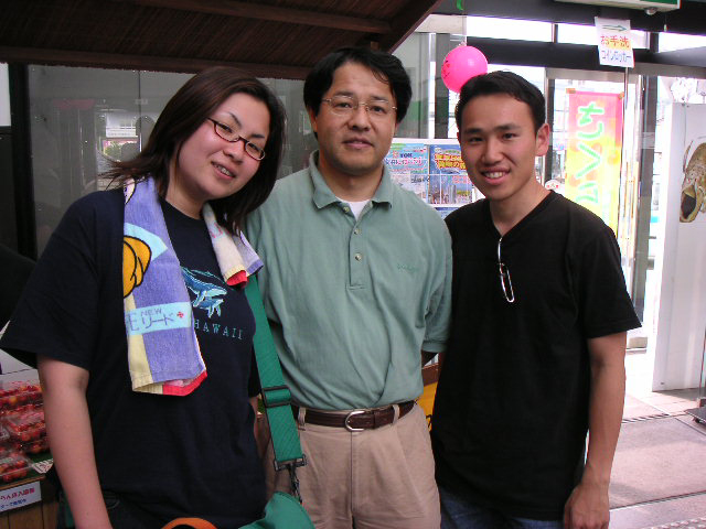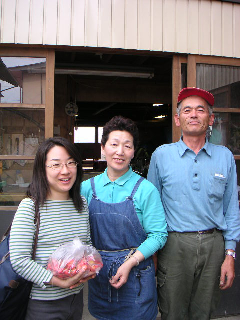 ![]() | 左から、参加者(手にもってるのはもちろんさくらんぼ)、北澤さんの奥さん、北澤さん。 |