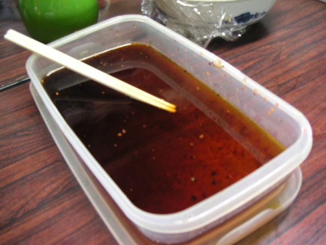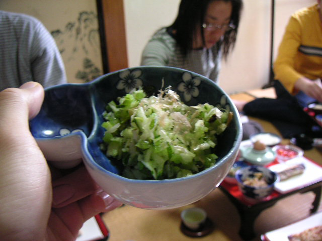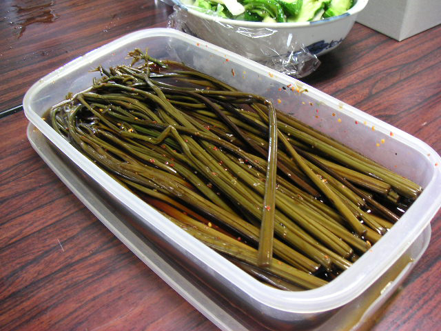 ![]() | お手伝いの方が作ってきて下さった「わらびの一本漬け」。これはすげーうまい。見た事ないですね。 |
