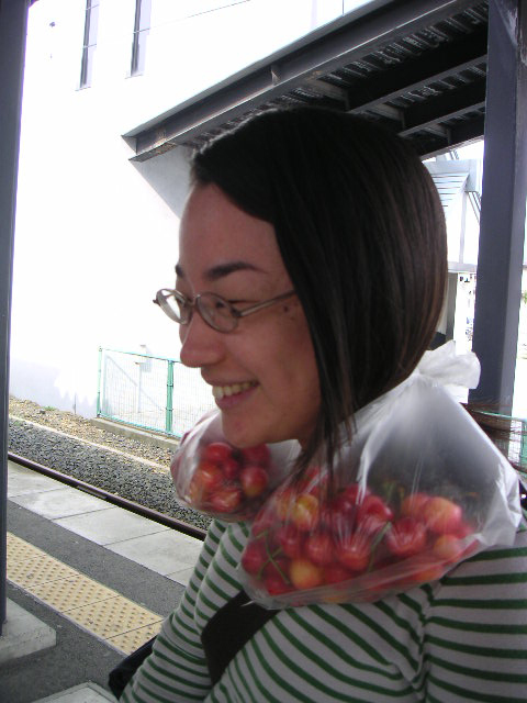 ![]() | 駅のホームです。いやー、それにしても二日間で沢山さくらんぼ食べました。一人あたり100個~300個ぐらいでしょうか。今までの人生で食べた数よりも多かった。 |