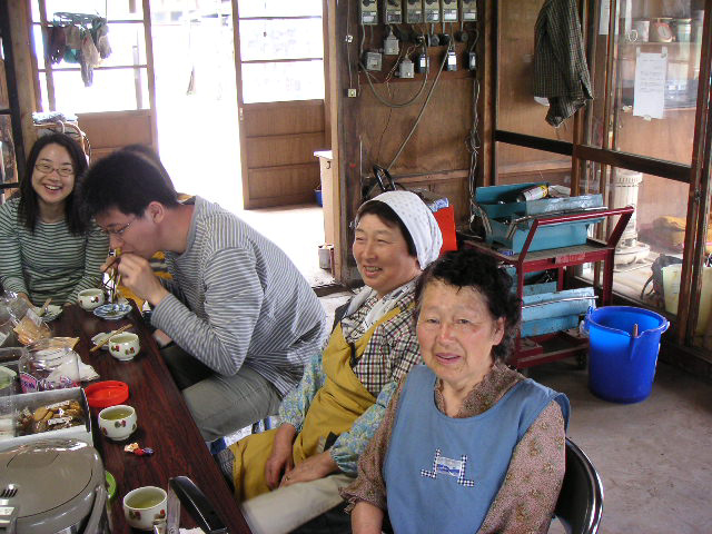 ![]() | 作業小屋でお手伝いに来ている方々と休憩。 |