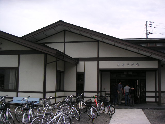 ![]() | 夜は、消防団の方に交流会を開いていただきました。場所は"金生公民館"。ここが本当にキレイな建物なんですよ。私たちがお邪魔した日には、他にも地元の小学校の方々の集まりがあったようです。それもあって、表には自転車がいっぱい。