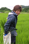 五艘みどり 28歳,女性,会社員,東京都在住 初日は田んぼの雑草取り。イネとヒエの違いって難しい!一面きれいな田んぼ、と思いきや、雑草って沢山生えているんですね。北澤さんの田んぼは有機なので、浮き草が沢山あって水面が緑色をしていてとてもきれいでした。有機だと田んぼに沢山のえさがあるので、つばめがいっぱい飛んできて、驚きました。田んぼに入るのは生まれて初めて。貴重な経験でした。 翌日行った滝も良かったですね。水かさが増して泳いだりはできなかったけど、市役所の井上さんも一緒になって遊んでくれました。北澤さんの所にお世話になるのは今回2回目ですが、是非今度は収穫の時期にでもお邪魔できたら嬉しいと思っています! |