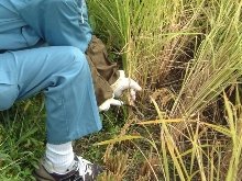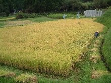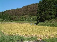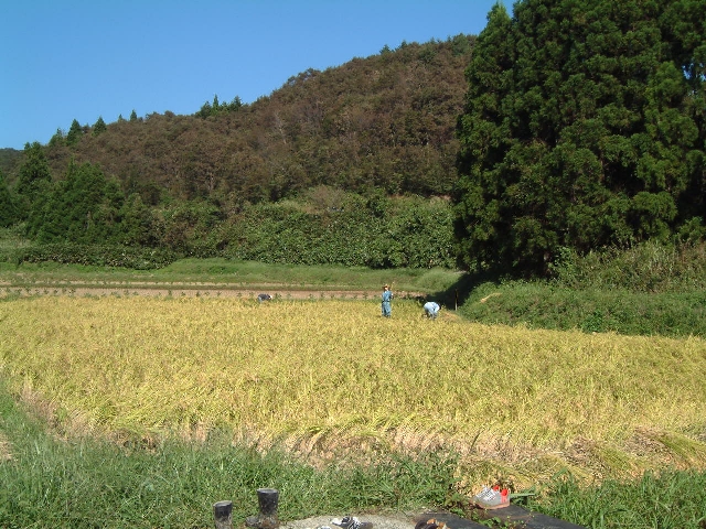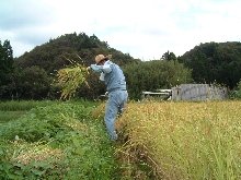 午後は別の田んぼで同じ作業。かなりいい天気。 浜田さんのお宅では,全部で10もの田んぼを持っているとのこと。 10もあると,大変そう。 |