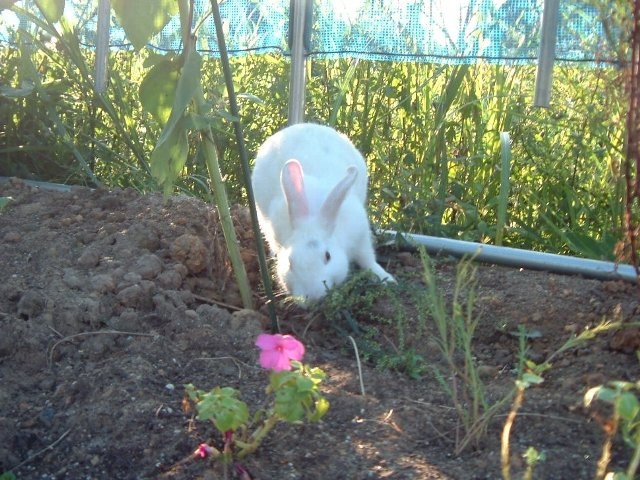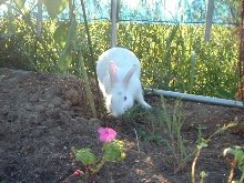 ウサギが放し飼いされてました。名前は「シロ」。 浜田さんは犬も飼っていて,名前は「クロ」です。 |