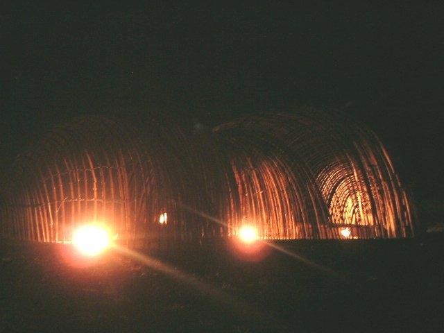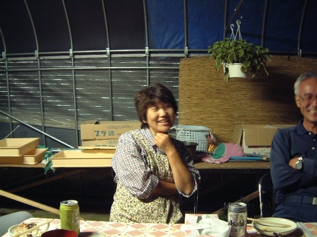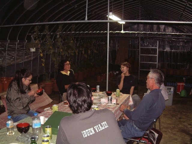 夜は,ビニールハウスの中で!みんなで晩飯. |