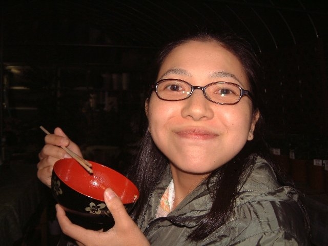 記念撮影。 中では,私の妹のたてたお抹茶を頂きました。 |