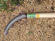 これが稲刈り用の鎌。草刈り鎌と比べて刃の部分がギザギザです。 よく分からないときは,左の写真をクリックしてください。 |