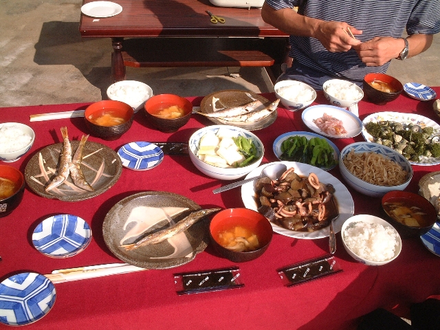 目の前の海で、今朝は朝からタコ釣り。 |