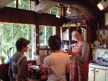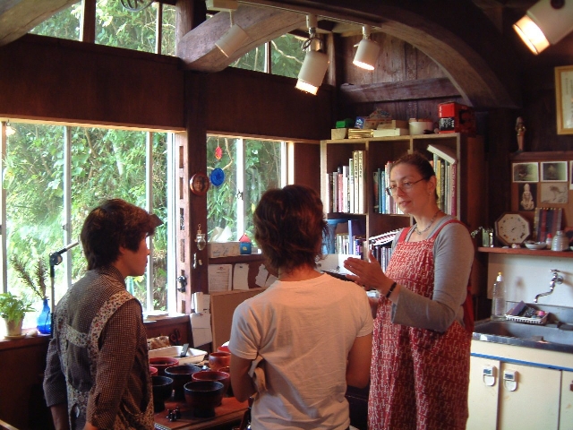 食事の後は,イギリスから来た輪島塗職人,スザンロスさんのところへ遊びに行きます。 |
