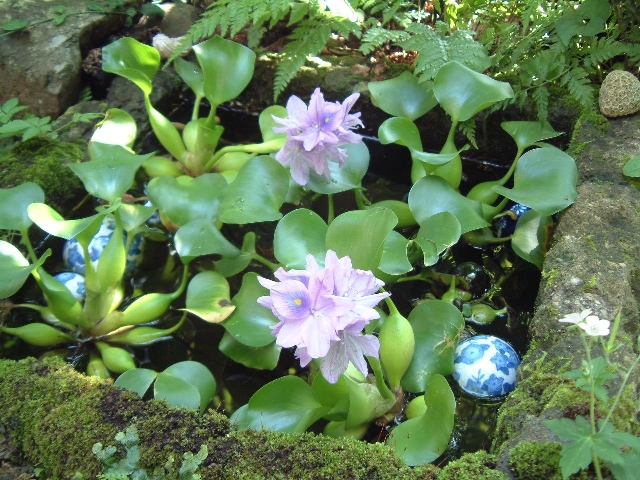 スザンさんの庭先の水草。日本の美をイギリス風にアレンジした感じがステキでした。 |