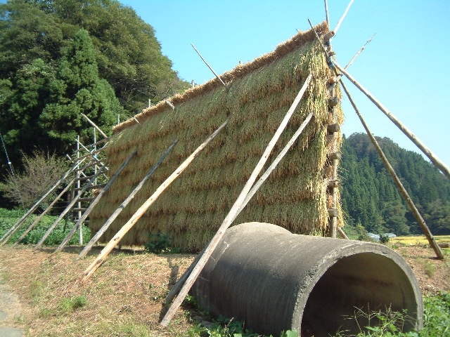 稲も干してありました。草のにおいが気持ちいい。 |