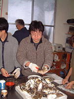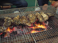 ![]() | 能登の豊かな食材を堪能します. まずは焼き牡蠣(カキ)。 |