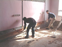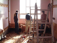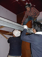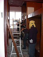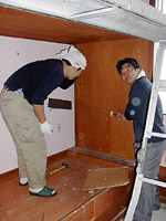 | 朝食後は,昨日の作業の続き.二段ベッドの解体を進めます.