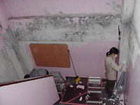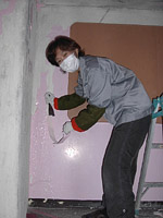 | こちらは壁のペンキはがしです。金属ヘラでこそぎ落とします。