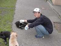 ![]() ![]() | 作業が終わると,犬と戯れるか, |