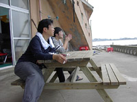 ![]() | ロビーでは,炭火を起こして海鮮バーベーキューの用意が。 |
