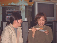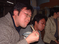 ![]() | 炭火で焼いて,ざっと火が通ったところで殻を取ります. 調味料は不要.アツアツをそのまま食べる! |