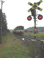 途中でのと鉄道の電車に遭遇. 2005年の4月には廃線となるこの電車.