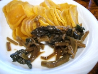 筍とオニアサリの味噌汁 オニアサリは、中国から日本海の辺りに分布する貝だそうです。若干の苦味があります。筍のアクの苦味と一緒になって すこし苦味のある味噌汁になりました。 自然のものを食べたときの「苦味」は、普段食べている野菜には無い美味しさ。 ひょっとしたら、農家で栽培されている野菜も、もともとはアクがあったのかも知れなくて、長い間栽培されてきた中で、 アクがなくなってきたのかも。。。考えすぎですかね? |