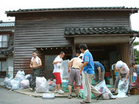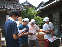 ![]() | 穴水班は、引っ越しの手伝いです。東京と違って、家が大きいせいか荷物も大量にあります。 ちなみに、写真の家屋は納屋。家は別にあるのです。 午前中は、捨てるものの整理(分別)作業でした。天気もいいし、暑かった~。 |