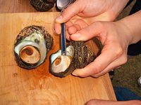 ![]() ![]() | 夕方、捕ったサザエを、早速調理します。 旬のものを最高の鮮度で食べるというのは、本当に贅沢! |