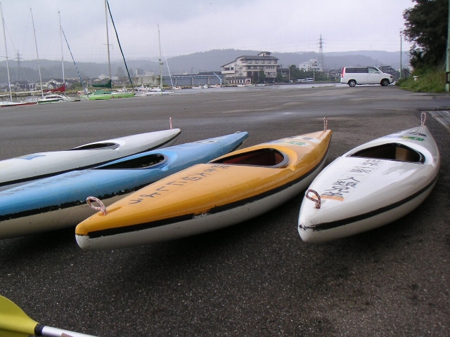 次の日には、カヌーに乗りました。写真は、役場所有のカヌー。 船体には「親を大切にしよう」の文字。 |