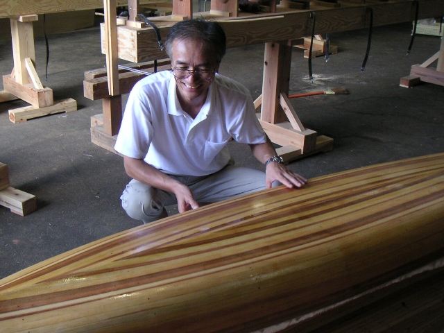 新田さんが、御自分で製作中の木製カヌーを見せてくれました。これは地元の木材を使ったもの。穴水の海のすばらしさを