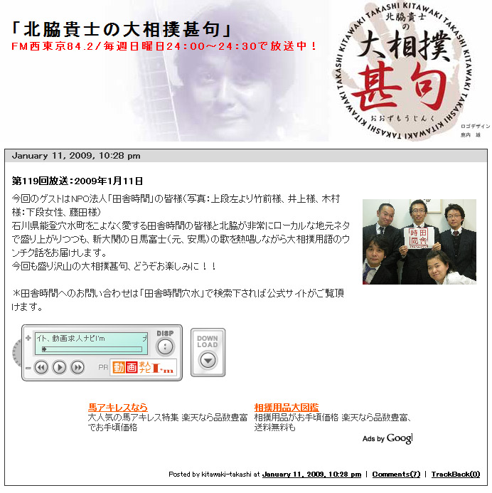 ラジオFM西東京「北脇貴士の大相撲甚句」 2009年1月11日