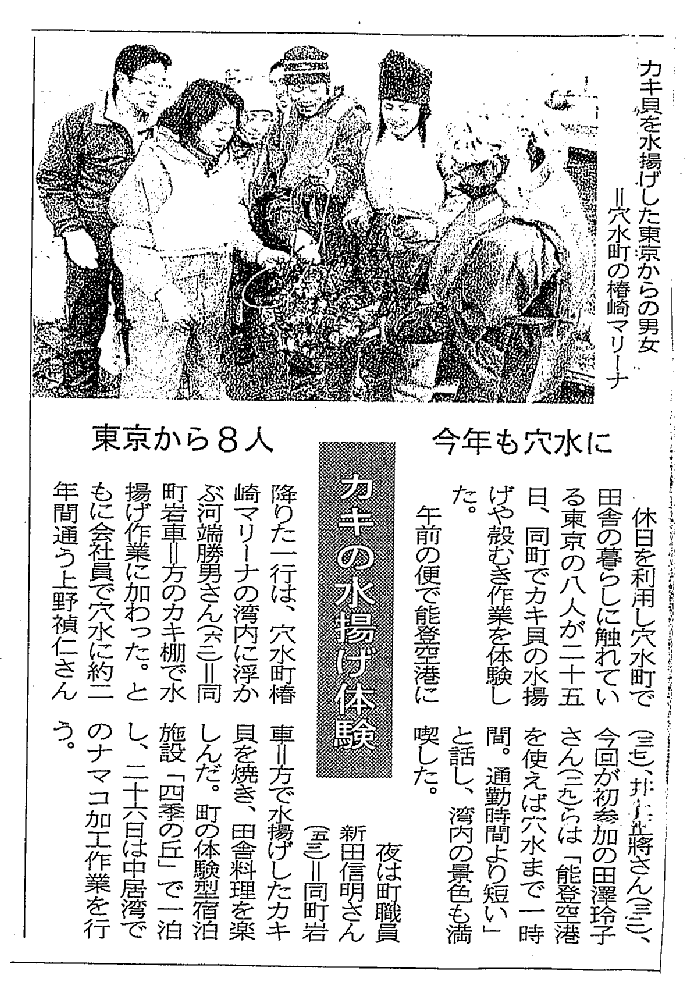 北國新聞 「カキの水揚げ体験 東京から8人今年も穴水に」 2006年02月26日