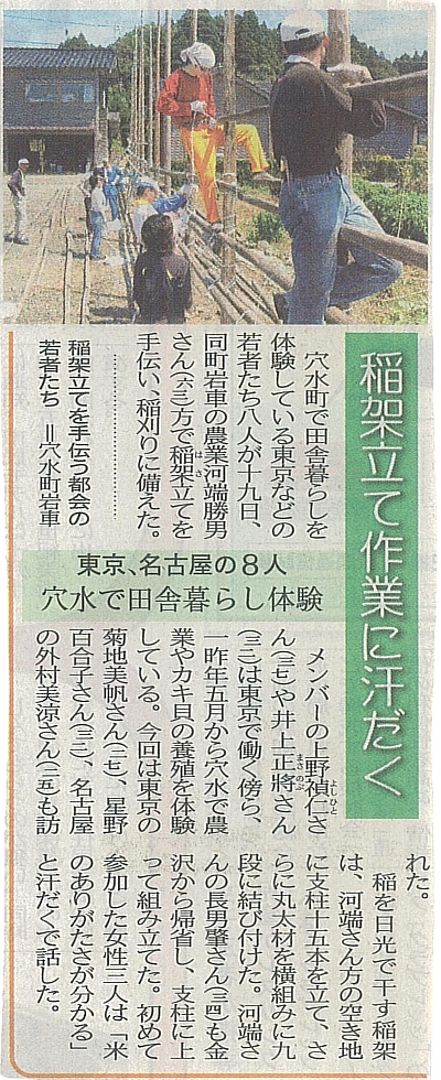 北國新聞 「稲架立て作業に汗だく」 2006年08月20日
