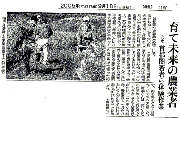 北陸中日新聞 「育て未来の農業者」 2005年9月18日